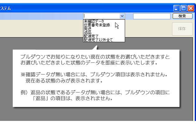 ■ 配送状況の絞込みで配達完了になっていないお客様のデータを即座に表示いたします。